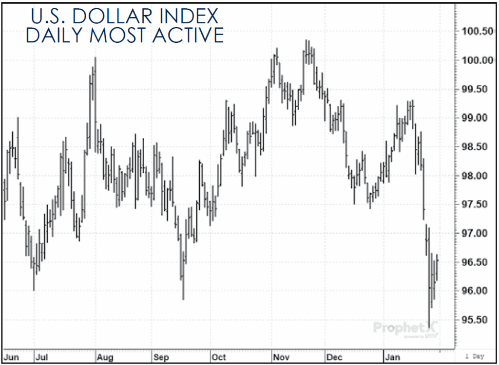 2. The U.S. dollar has dropped sharply (effectively also adding to inflation pressures) making agricultural commodities shipped from the U.S. much less expensive.