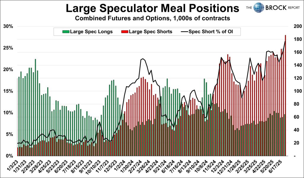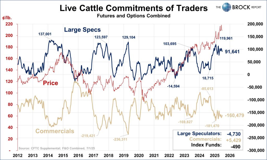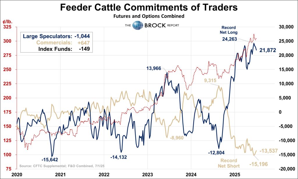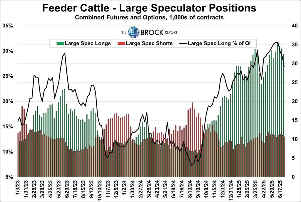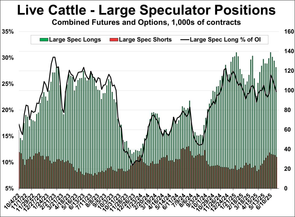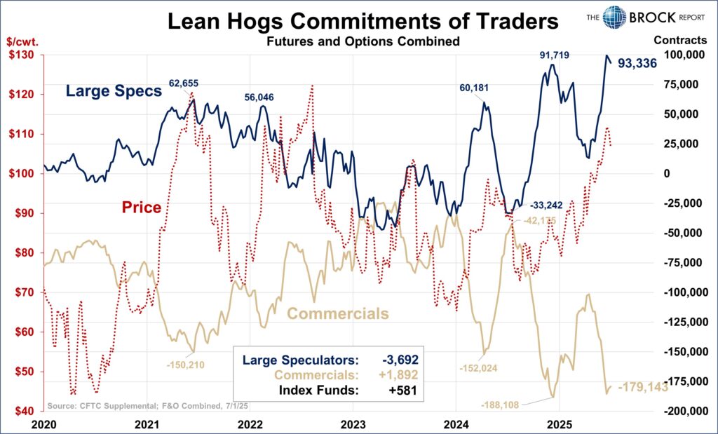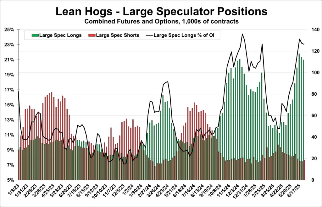 We raised the red flag on lean hogs last week, just as we did in Feb. for corn. Specs have now been net sellers two consecutive weeks primarily through long liquidation. This week they also increased their short exposure. We are very concerned this market will sell off sharply and advice extreme caution to producers.