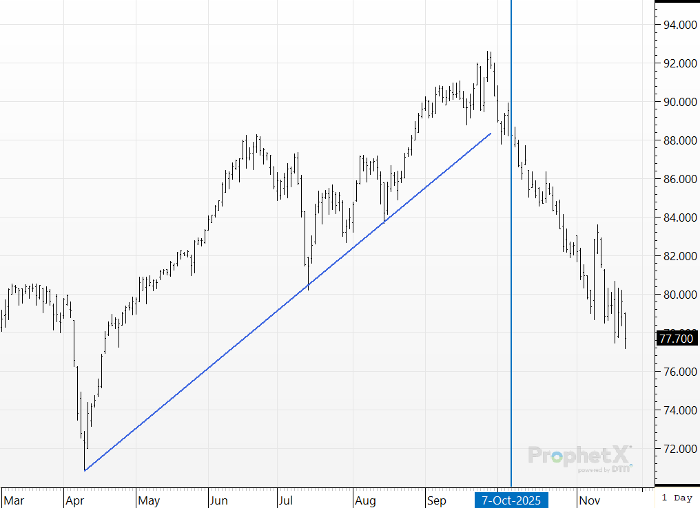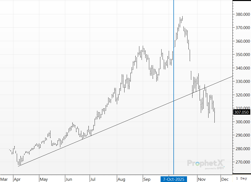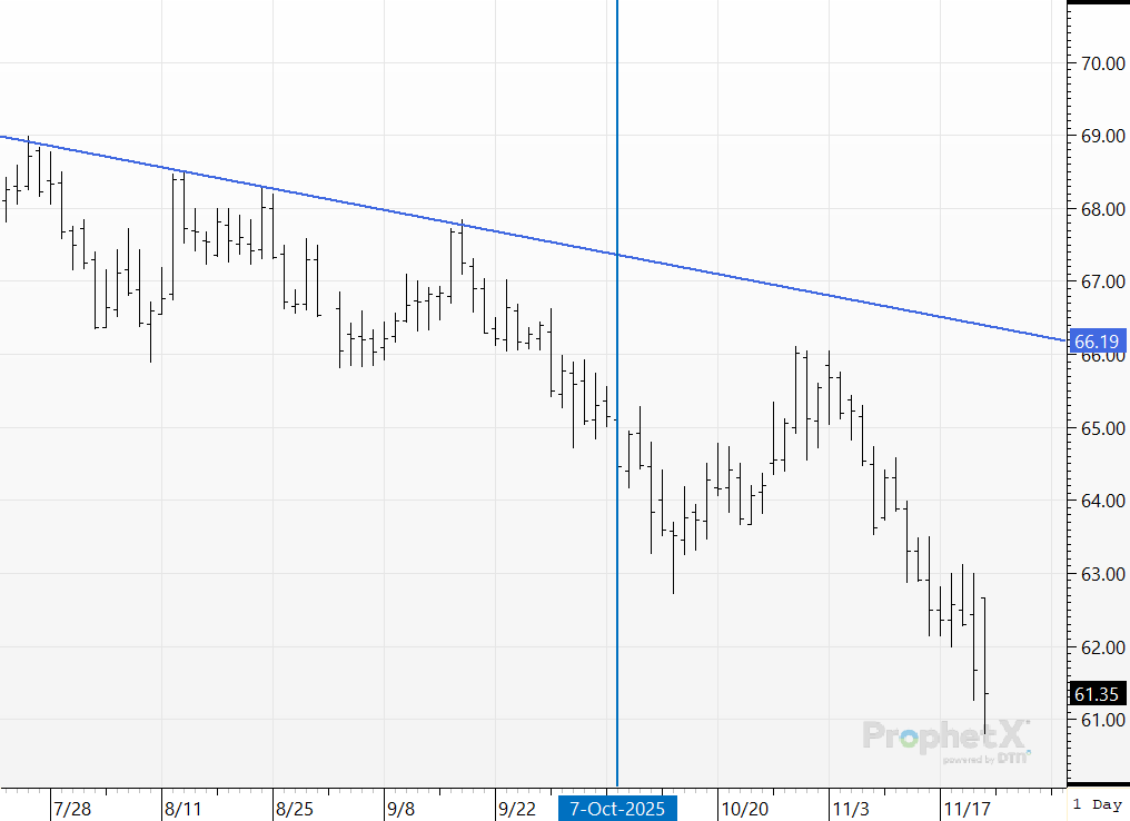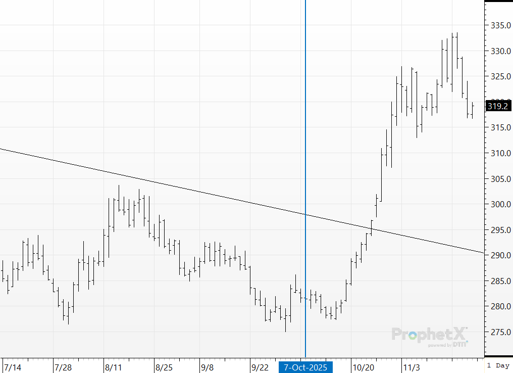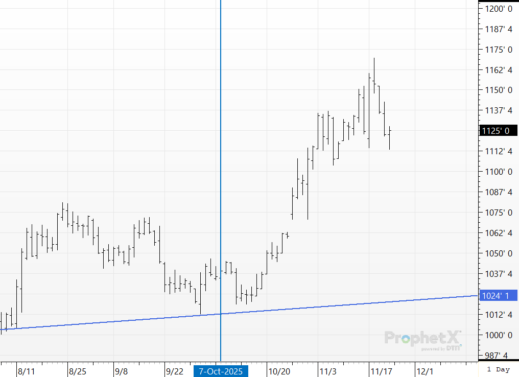 Corn prices since early October really have not done much. They dropped about 10¢, then rallied about 25¢, and then sold off about 20¢. With inconsistent price action, we would not expect to see any extreme movement in the large spec position. Nothing in this report, we’ll check back in next week.