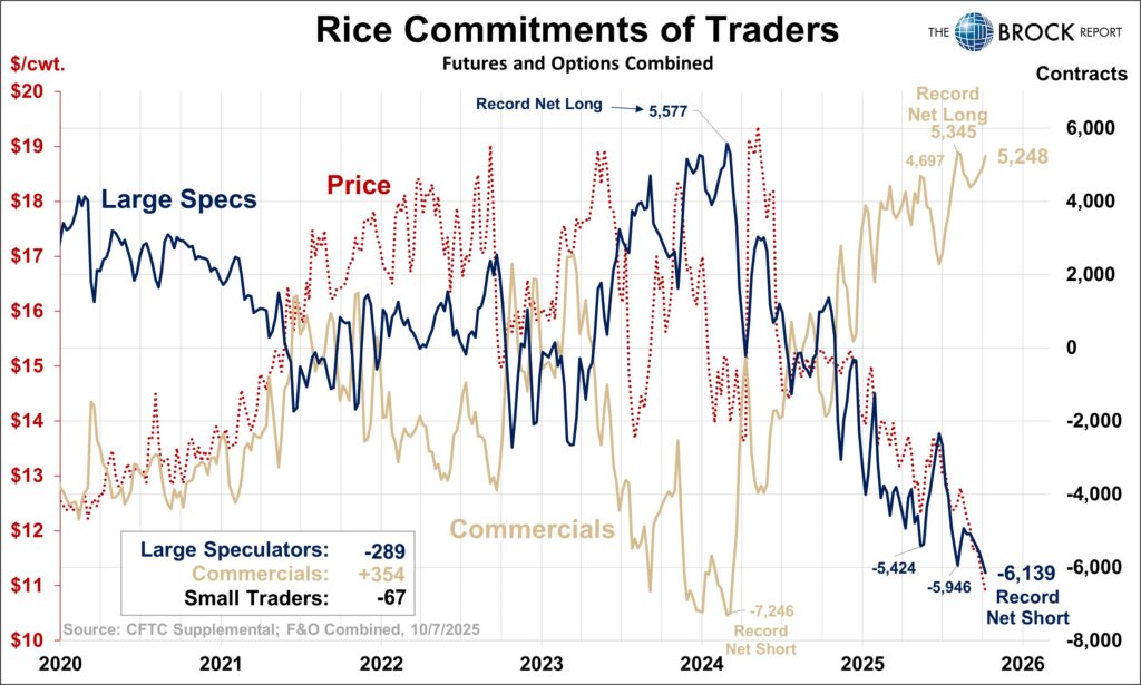 Additionally for rice, a new record net short set by large speculators = additional downward pressure on prices. Would have been nice to know.