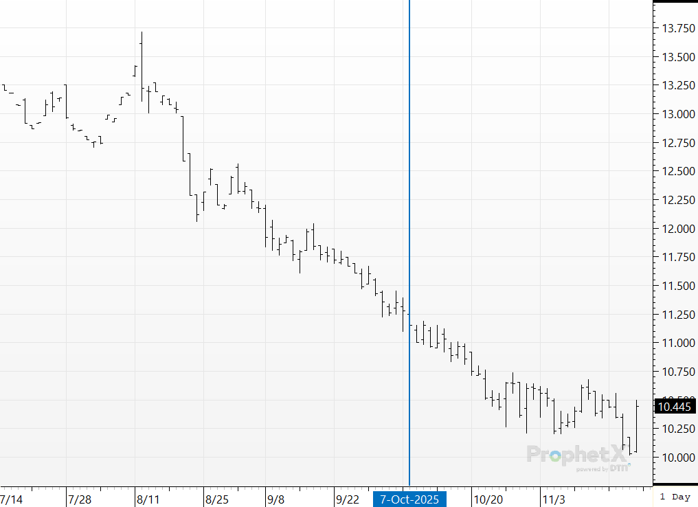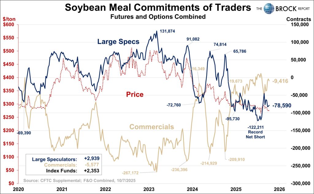 Modest buying in the meal, overshadowed by the prior few weeks of massive buying, would combined be a moderate indication that we could see a sharp rally in futures. This one we were on before the government shutdown took away our data. We warned many many times that the combination of low prices, and I mean roughly matching the lows going back to 2008, as well as the record net short by large speculators, was a recipe for a sharp rally in prices. We advised feed buyers to procure needs, and those that followed the recs are today very thankful.