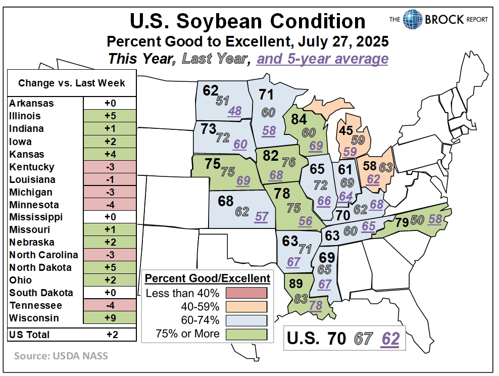 - U.S. Soybean G/E rating improved 2 points this week after.