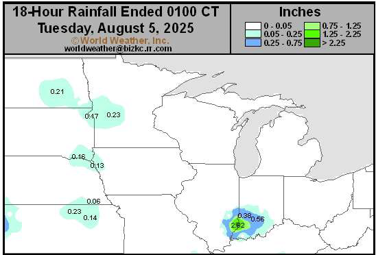 Brazil’s second-crop corn harvest advanced to 75.2% complete as of Aug. 2, up from 66.1% a week earlier, but still behind last year’s rapid pace of 91.3% complete, according to CONAB, the supply dept. of Brazil’s agriculture ministry. Harvest is nearly over in the top growing state of Mato Grosso at 96.9% complete.