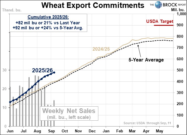 Net weekly U.S. wheat export sales totaled 13.9 mil. bu. compared with trade estimates that ran from 11.0-24.0 mil. bu. and the previous week’s sales of 11.2 mil. bushels. The sales data looks slightly negative for wheat prices.