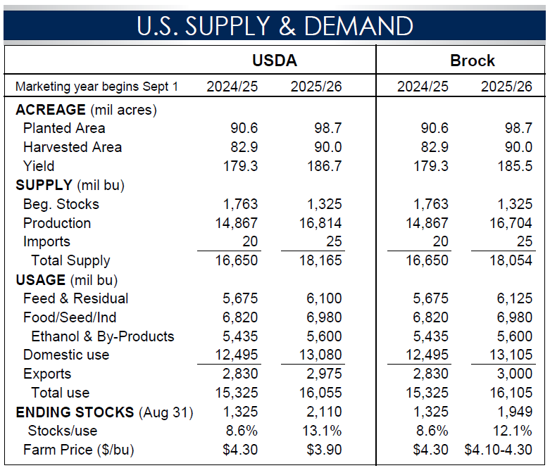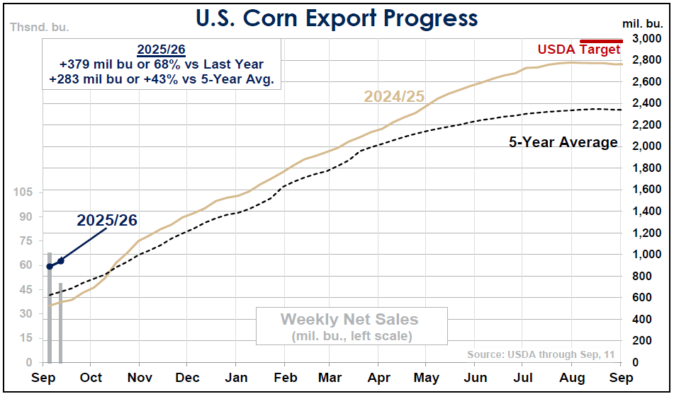 As pointed out in the lead, the fundamentals in the corn market we believe will continue to get more friendly. Exports are strong. The U.S. crop will be big but is very unlikely to get bigger from current USDA estimates in our view. We’re not saying this is going into a major bull market but it is a market that has established a substantial bottom.