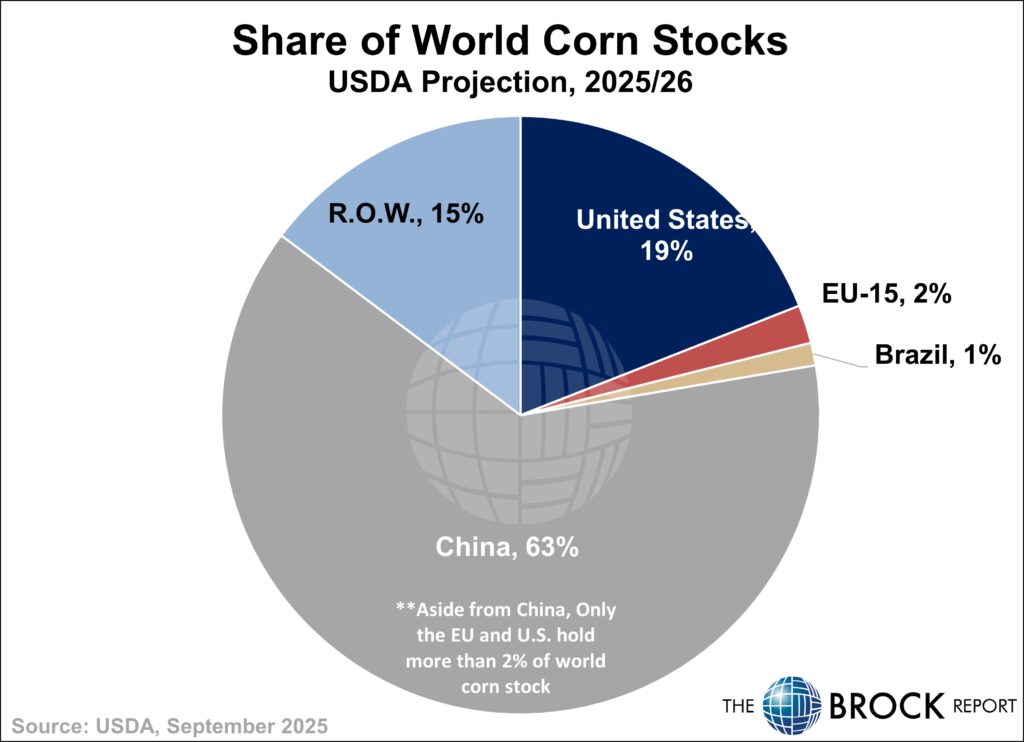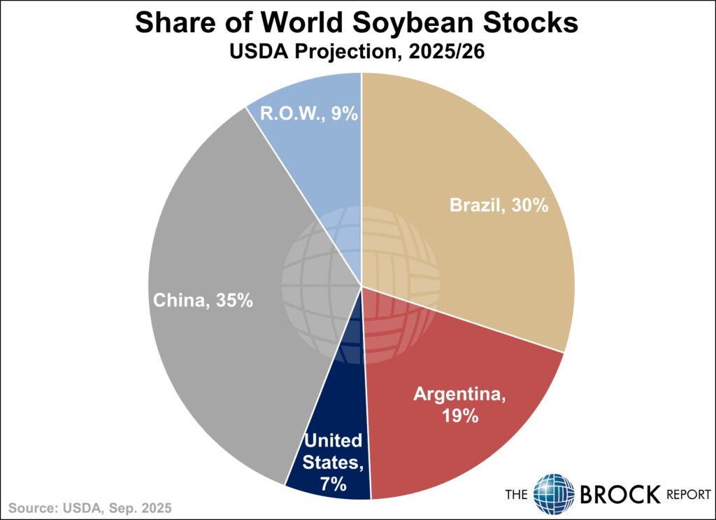 The graphs below tell a compelling story. As of now, China holds 63% of the world corn supply. They hold 35% of the world’s soybean stocks. Brazil now represents 60% of the world’s soybean exports and has also captured a significant share of world’s corn exports.